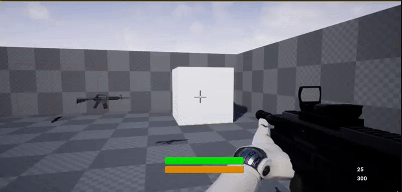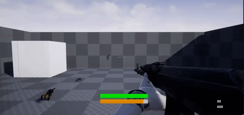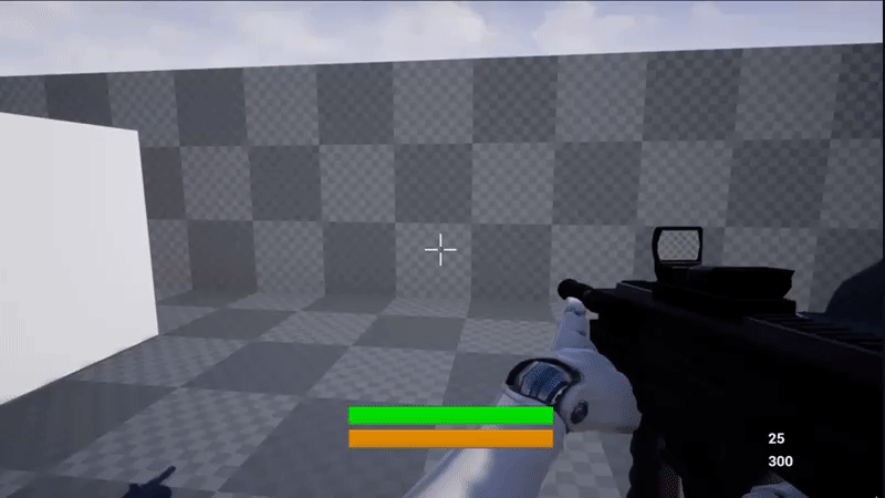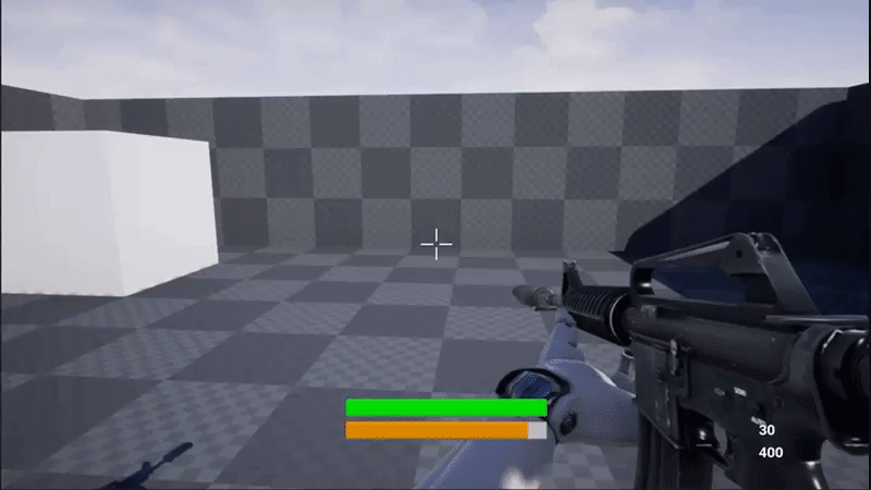As I plan to have a variety of weapons in my game, not all of them can be the same in terms of damage, fire rate and recoil amongst other factors. Thus, my first change to the weapons was adding a fire rate to the current 3 automatic weapons that are set up, the M4, the AK47, and the SMG. The AK47 has the slowest fire rate of the 3, the M4 has a moderate fire rate and finally the SMG has the fastest fire rate currently, which is subject to change. The damage system is also in place, using a Blueprint Interface to store information between different actors, I can apply damage to any actor that implements the same interface using this system.